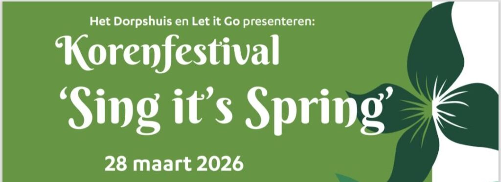 Winterjas met warme sjaal en handschoenen aan. Ik fiets met een harde, gure tegenwind en een lage gevoelstemperatuur naar Valkenburg. Het is 28 maart en ik verheug me op onze deelname aan het korenfestival ‘Sing, it’s spring!’ in het dorpshuis aldaar. Bij binnenkomst lijkt het al wat meer op lente. De temperatuur is beter en ik zie veel gezellige gekleurde outfits om me heen.